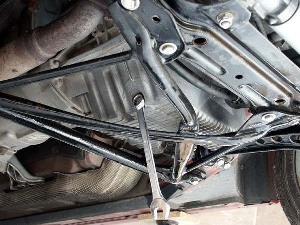 Un fastening sump drain plug – note spanner in inverted position to avoid slipping off