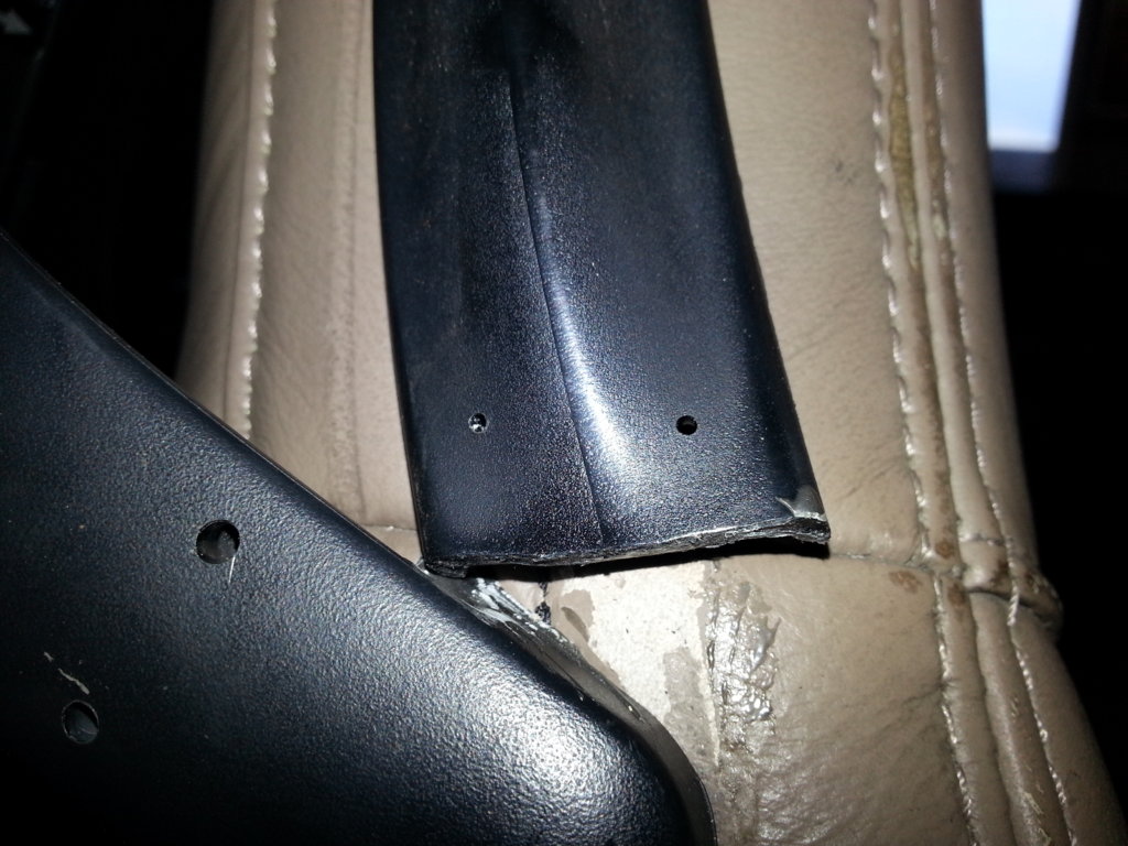 I have seen quite a few methods of repairing the seat belt guides on our cars. Here is mine, not as pretty as some but definitely less expensive.