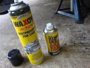 I used zinc 182 primer, clear Waxoyl spray for inside box sections and original Waxoyl underseal