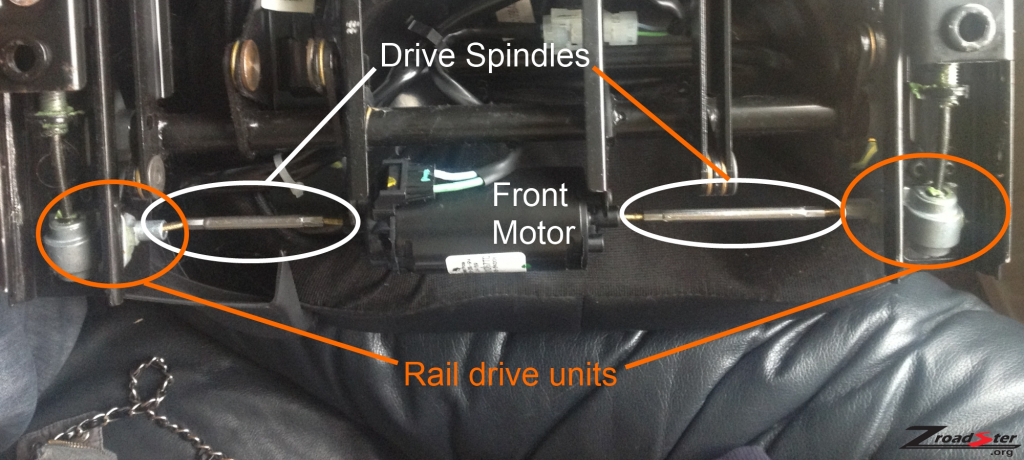 The picture above shows the seat removed from the car so you can see what you are looking for. The forwards/backwards movement is powered by the motor accessible directly at the front of the seat.