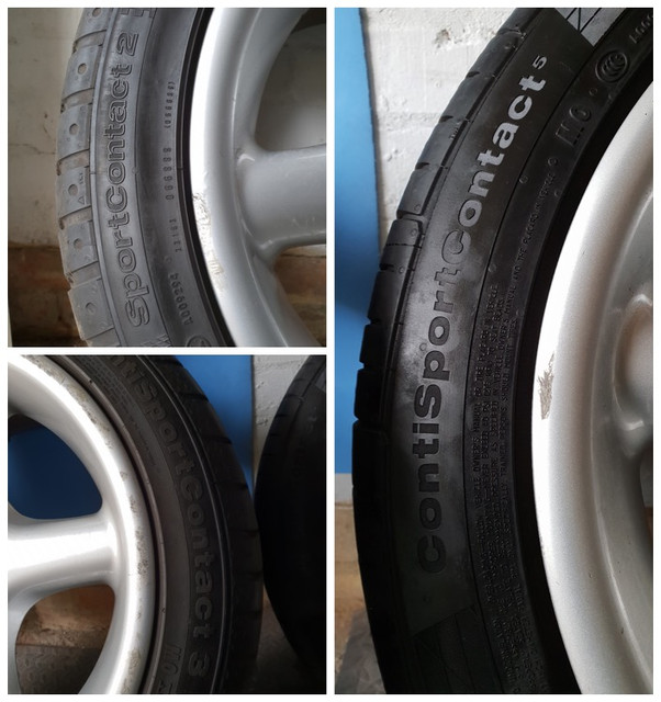 They are generally in decent condition and with a basic refurb would come up lovely. None of them are bent or cracked. All four wheels come with centre caps and Continental SportContact tyres with the following tread left.